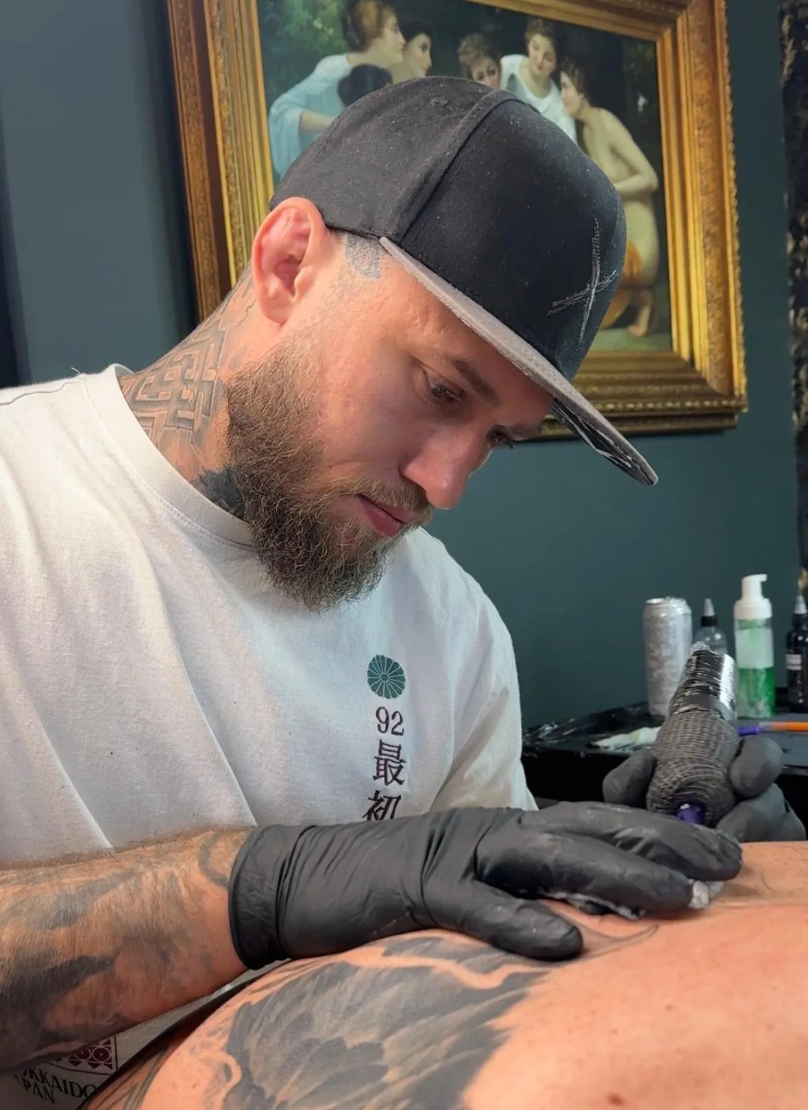 Meet is Val ,tattoo artist and co-owner of The Inkers Mark. With over a decade of experience in the craft, Val specializes in black & grey realism, blackwork, and neo-traditional styles. Val’s focus is always on quality over quantity, taking the time to create custom designs for each client. Every piece is built from inspiration and references, never by copying another artist’s work.